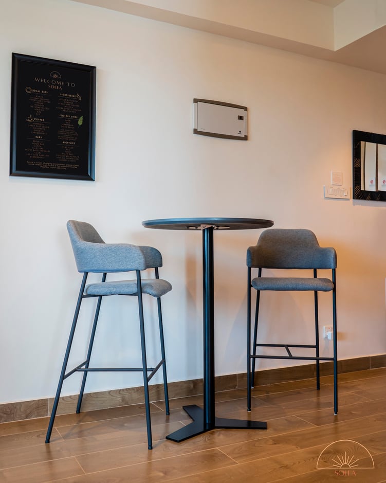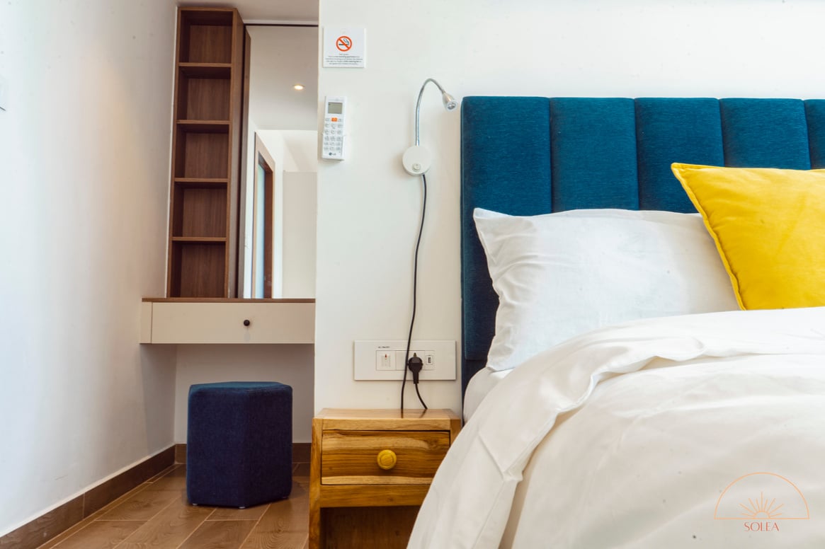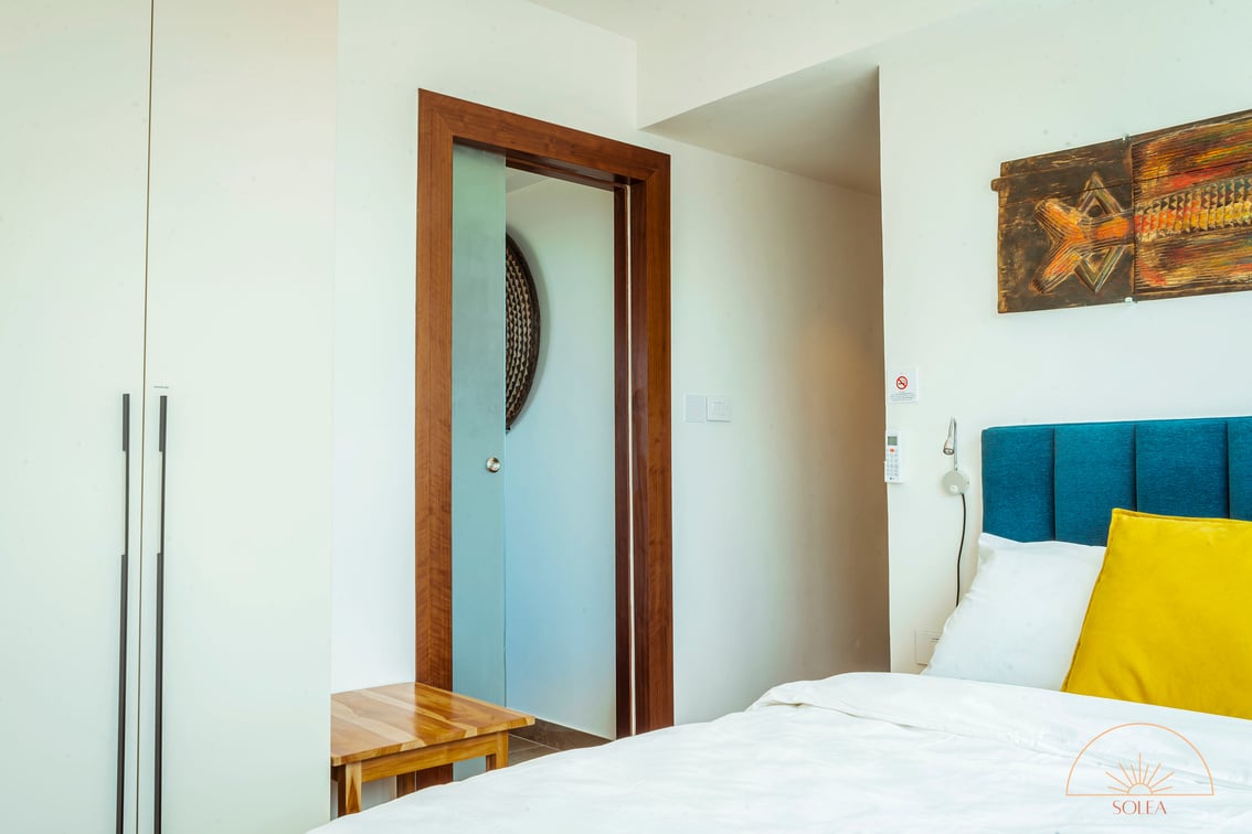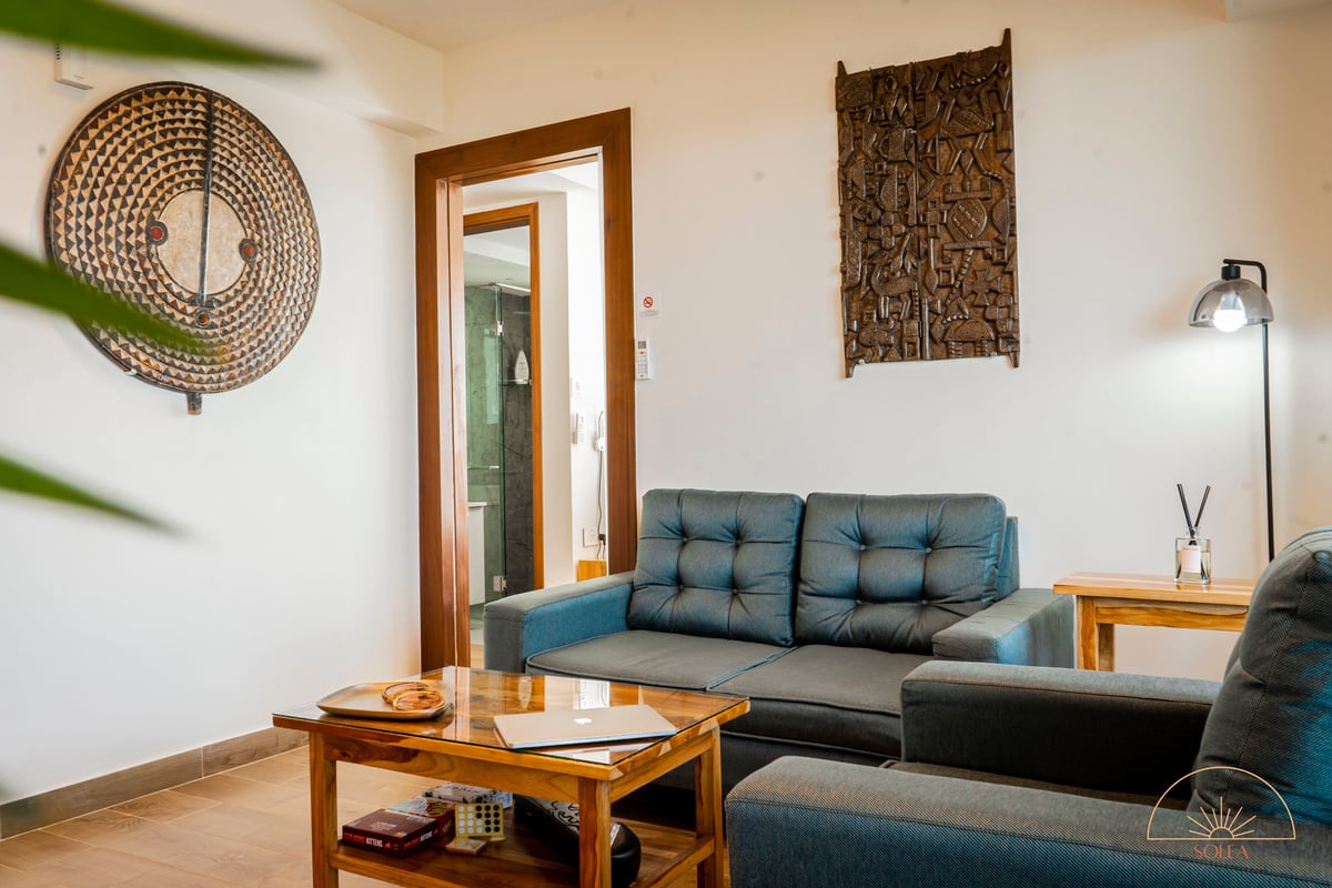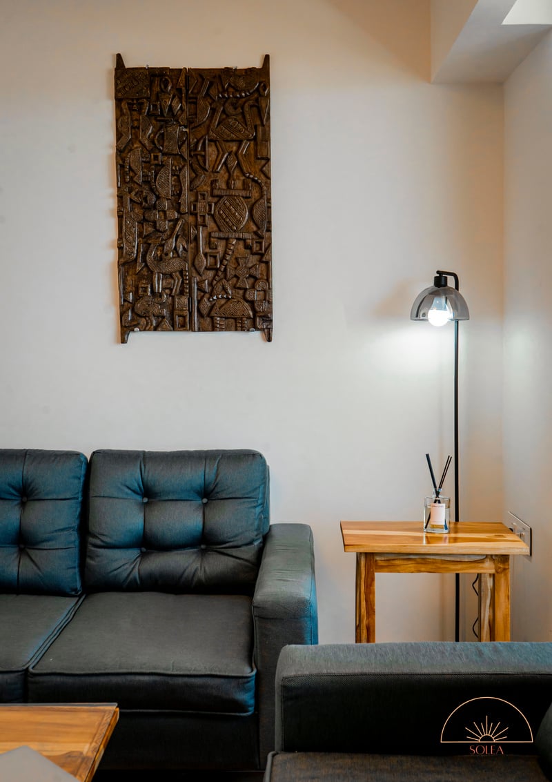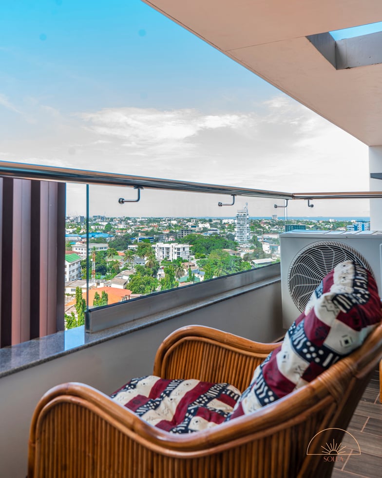 At Solea, you are not only experiencing a hotellike stay but also getting to know Ghana through our handpicked interior. The apartment features antiques from Cape Coast, handmade balcony furniture made by artisans in Accra and all wooden pieces are sourced within Ghana and handmade in Aburi. We provide a "European Standard" with hotel amenities. Our digital guest map allows our guest to fully prepare for their trip and also helps navigate through Accra and the rest of Ghana.
