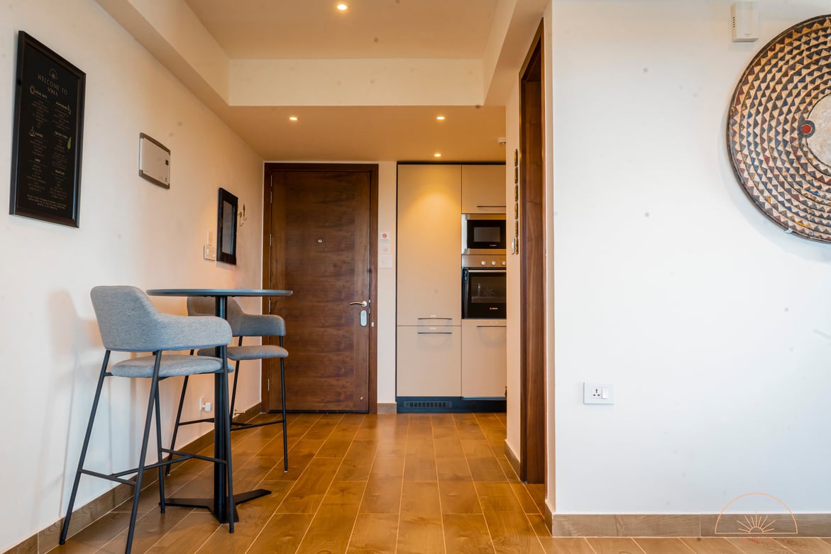 The one-bedroom luxury apartment is equipped with the following: